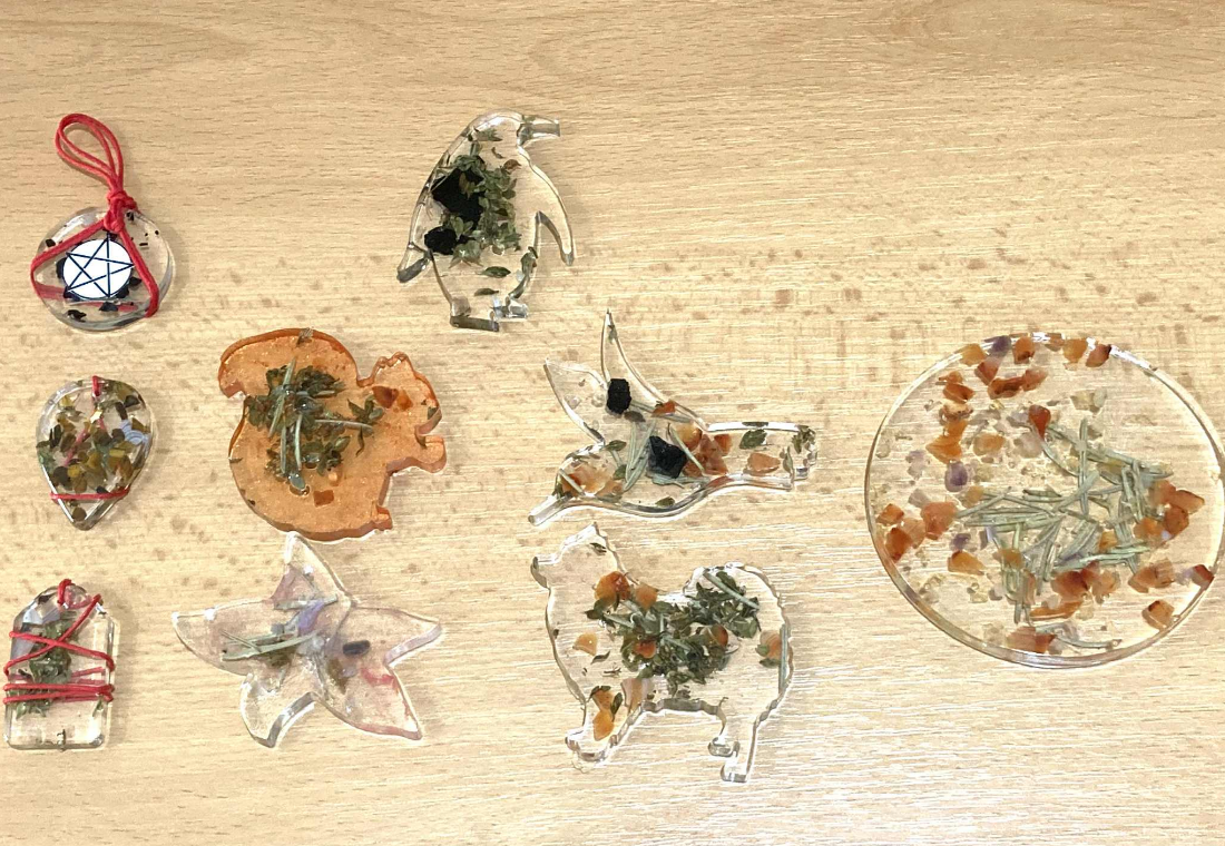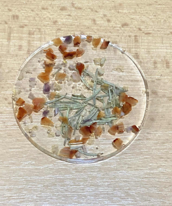 Je crée chaque amulette intuitivement, en lien avec votre vibration du moment : je sélectionne des pierres semi-précieuses, des herbes ou fleurs séchées, et j’y dépose votre intention.