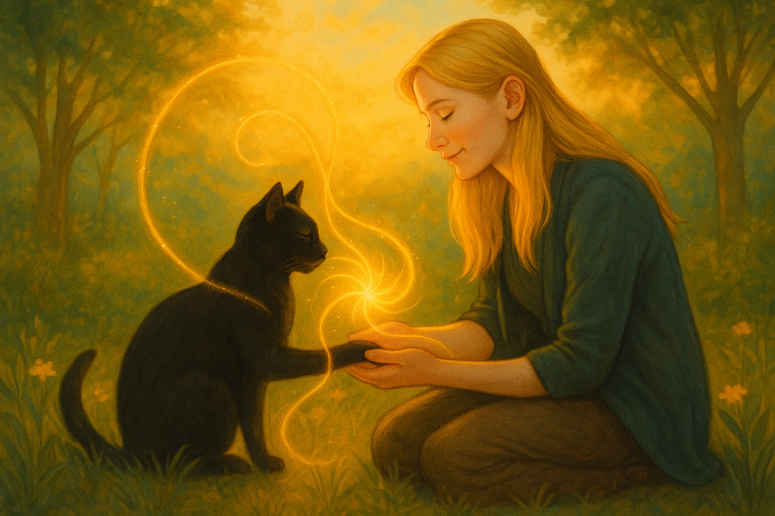 Cet accompagnement aide à la fois l’animal dans son passage, et le gardien à traverser le deuil avec paix et amour.